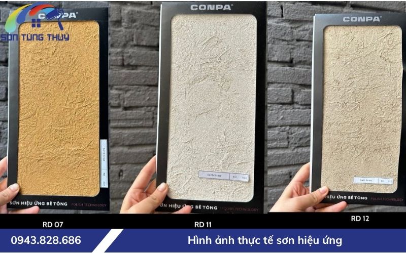 Từ sơn tường hiệu ứng nhung, xi măng, ánh kim, rỉ sét cho đến các dòng sơn tạo hiệu ứng đặc biệt Conpa, Sơn Tùng Thủy đều có sẵn mẫu và bảng màu đa dạng để bạn dễ dàng lựa chọn.